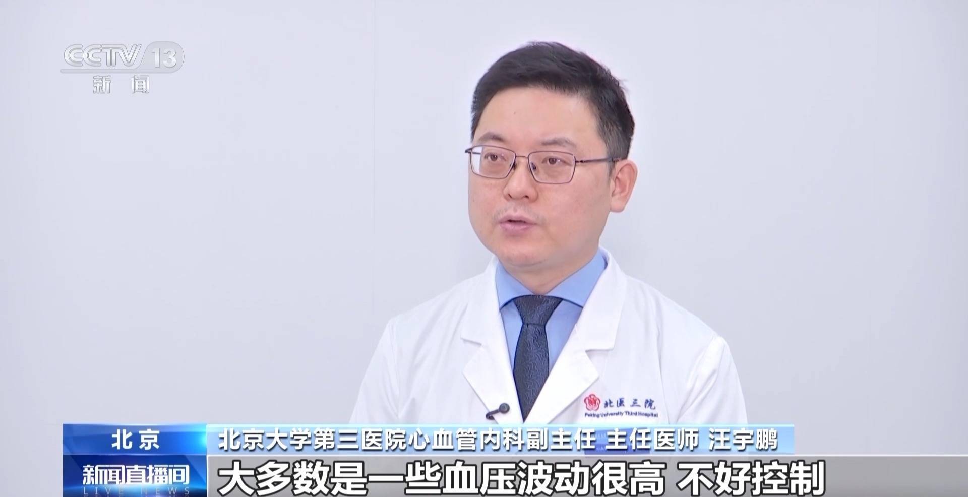 北京大学第三医院心血管内科副主任 主任医师 汪宇鹏:这两天气温骤然下降之后,以急诊增加为主,大多数是血压波动高、不好控制,还有一些胸痛,以心绞痛不能控制或者急性心梗来就诊的,现在住院的急诊病人也是翻倍增加。