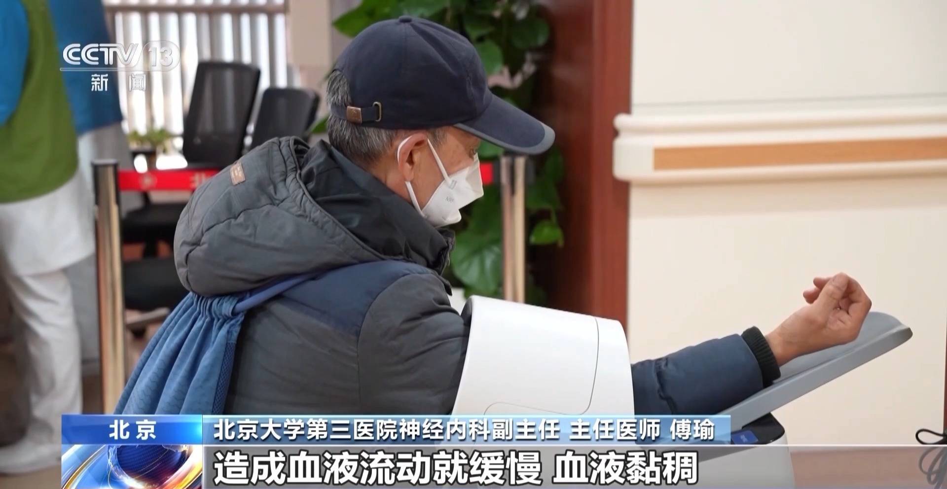 北京大学第三医院心血管内科副主任 主任医师 汪宇鹏:心血管科门诊现在一多半的患者可能都是血压升高的,高血压的患者合并一些头晕、头痛的症状。尤其是长时间待在干燥的室内,如果摄水量不够,可能会导致血液的黏稠淤滞。再加上如果吃了高热量食物,也会导致血液变得更加黏稠,这些都会让我们在这个季节,更容易发生心脑血管的疾病。