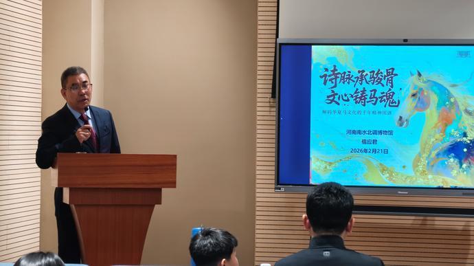 15时30分,“新年第一课”专场讲座正式开讲。本次讲座由博物馆党支部书记信应君主讲,结合精心准备的多媒体课件,以“马”年文化为主题,系统梳理了“马”这一生肖符号在中国历史文化长河中的丰富内涵。从“龙马精神”的奋发进取,到“马到成功”的吉祥寓意,再到文学艺术中马的形象演变,信应君通过生动的讲述,引领观众深入理解马所承载的忠诚、勇毅、祥瑞等文化精神,在知识的拓展与历史的回望中,进一步激发观众的文化认同与自信。此外,贯穿全天的“马年民俗潮玩汇”第五场活动,通过设置好运投壶、民俗知识问答、幸运抽盲盒等互动环节,为市民游客送上了源源不断的新春惊喜与欢乐,营造出喜庆祥和、其乐融融的节日氛围。