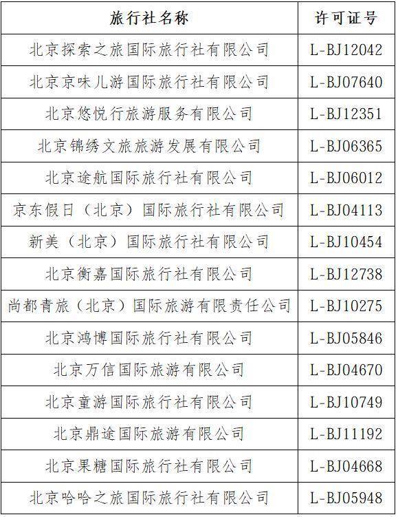 根据我市旅行社涉诉情况统计,现公示2026年2月23日至3月1日,北京市投诉量排名前十旅行社名单如下(含投诉数量相同旅行社共15家):